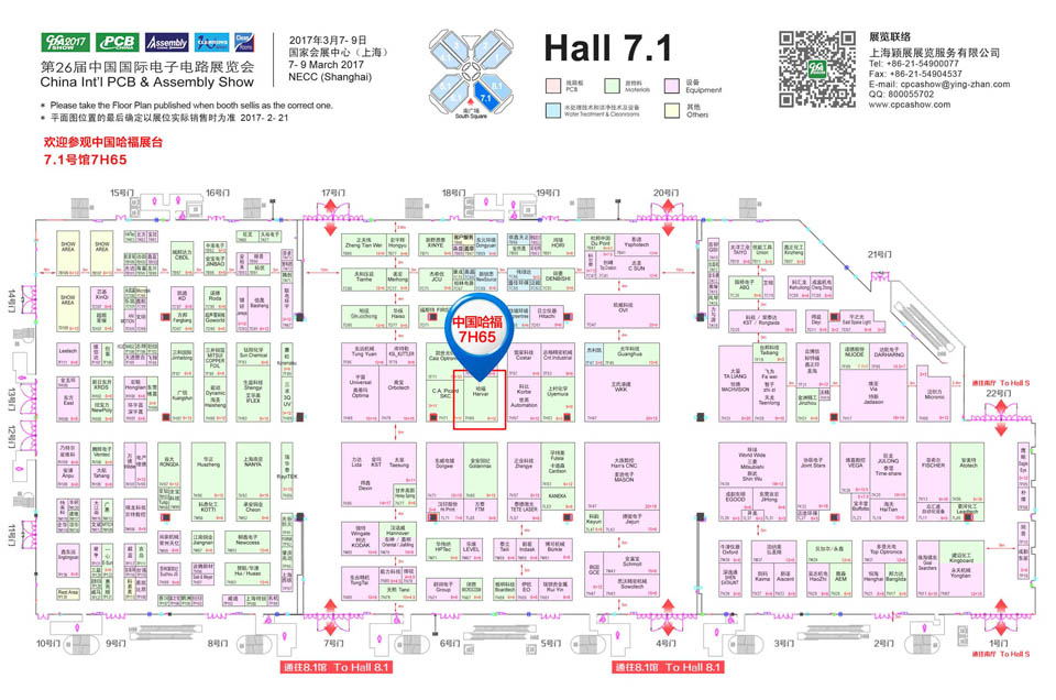 哈福集團(tuán)將于207年3月7-9日參加在國家會展中心舉辦的第二十六屆中國國際電子電路展覽會,展臺號:7.1館7H65。