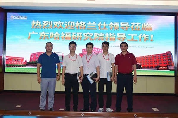 廣東哈福研究院的科研實(shí)力平臺(tái),并在研究院一樓大廳進(jìn)行合影留念。