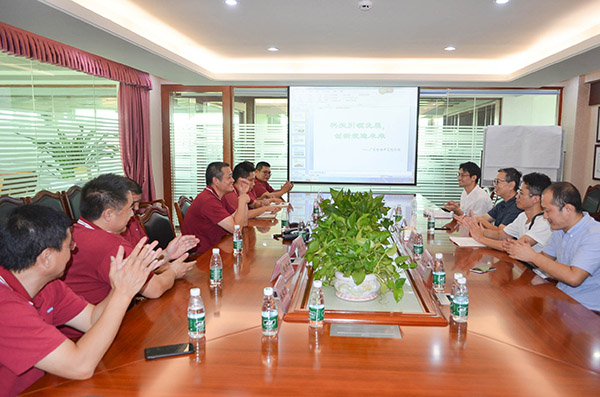 President Chen Yong of the Research Institute introduced the strong faculty of the Research Institute at the symposium, and had an exchange and discussion with President sun Yanyi of the school of materials and food, Sun Yat sen University of Electronic Science and technology, Dr. Lin Jianhui, Mr. Shao zikun and Mr. Lin Kaiwen, etc., expressing the bright prospect for the construction of the production, learning and research platform and the vision for resource sharing, cooperation and win-win.